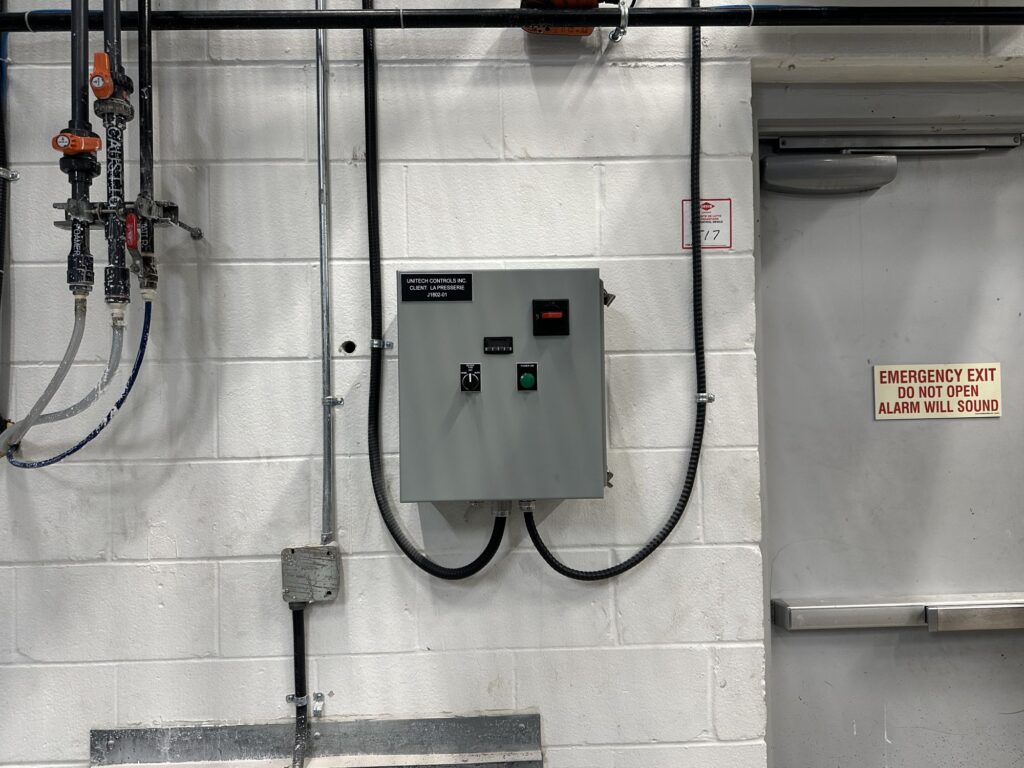 Unitech Controls offers a pre-site inspection of the equipment and provides pricing for any required modifications. It’s important to note that site evaluations differ from standard electrical inspections. A site assessment covers more than just the main enclosure, including a thorough review of wire and cable sizes connected to field devices like motors, heaters, and audio signals. The inspection also checks wire color coding and the main input power. During the pre-site inspection, we ensure all components are CSA-approved for use in Canada and correctly integrated into the panel.